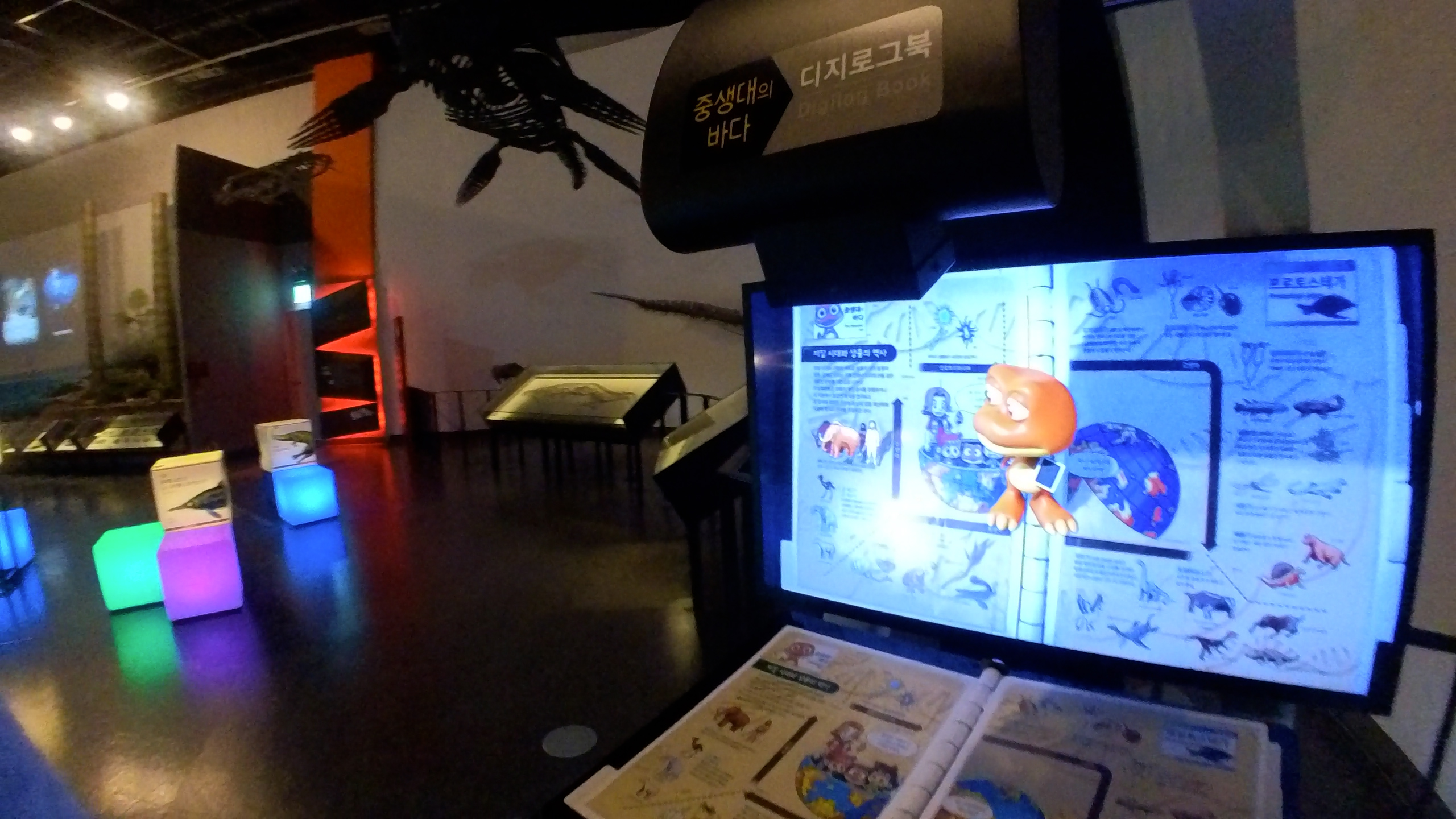 모니터 앞의 책을 넘기면 귀여운 공룡이 설명을 해주었다.