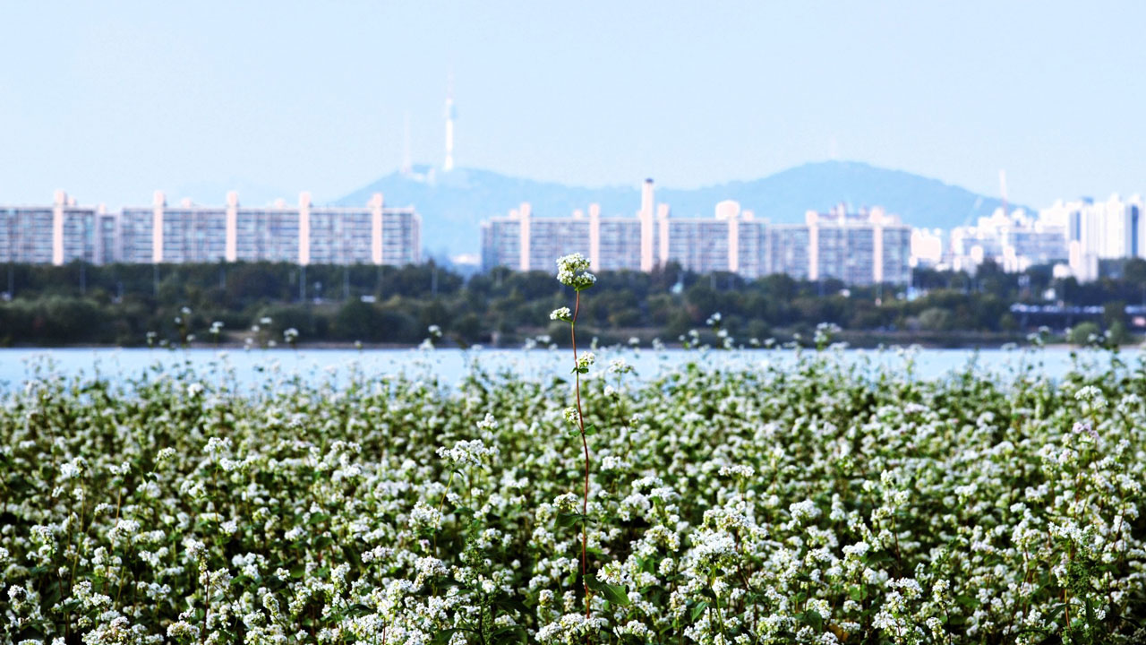 한강의 시원한 바람, 하얀 메밀꽃밭, 그리고 서울의 랜드마크가 어우러진 이곳은