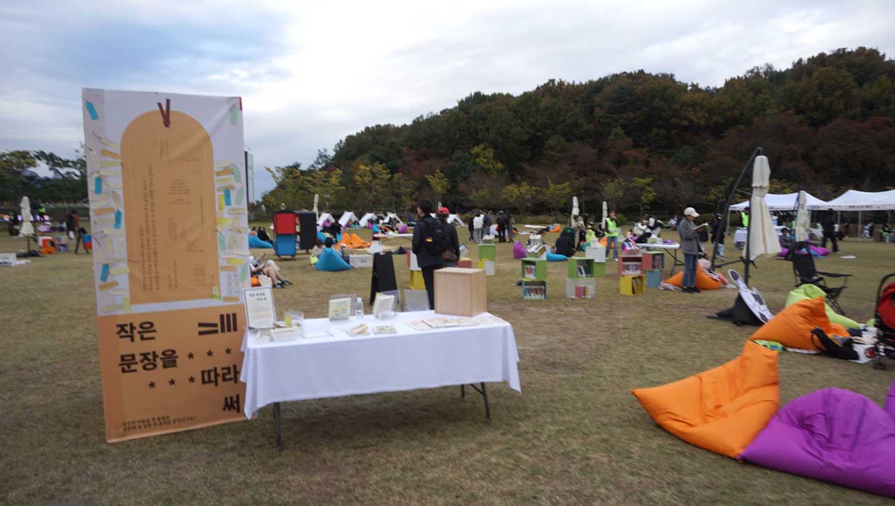 세 가지 테마를 가진 야외도서관이 행사장 가운데에 꾸며져 있다.