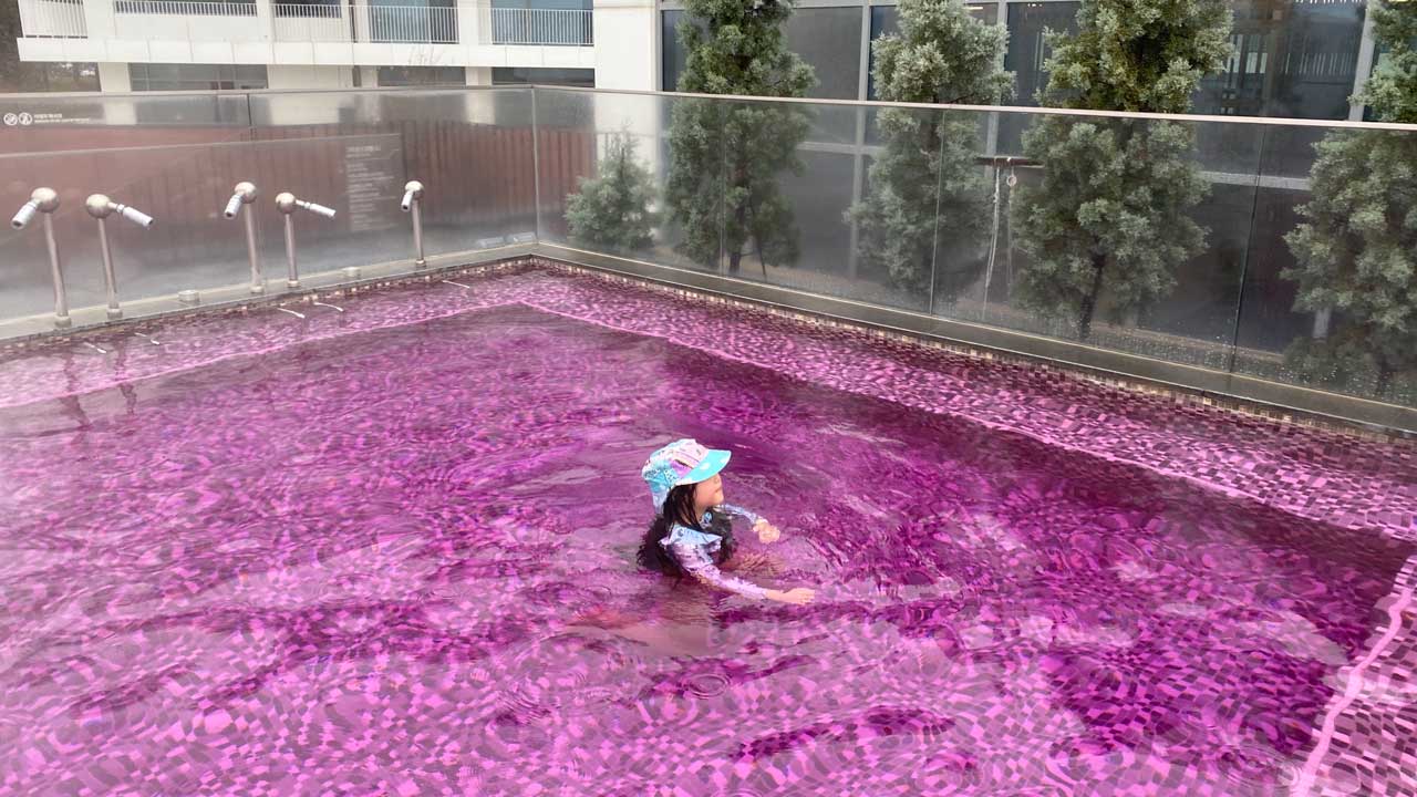 연두색과 보라색 온천수가 눈에 띄는 노천스파가 있었다.