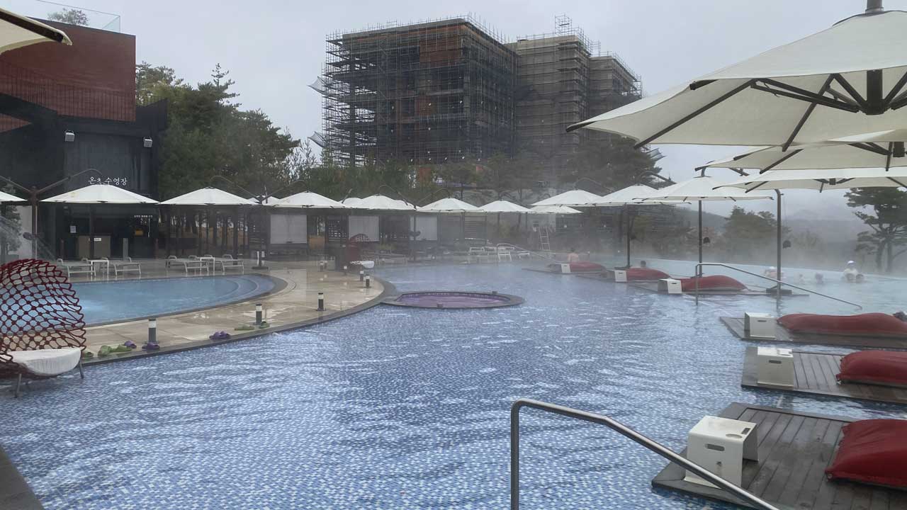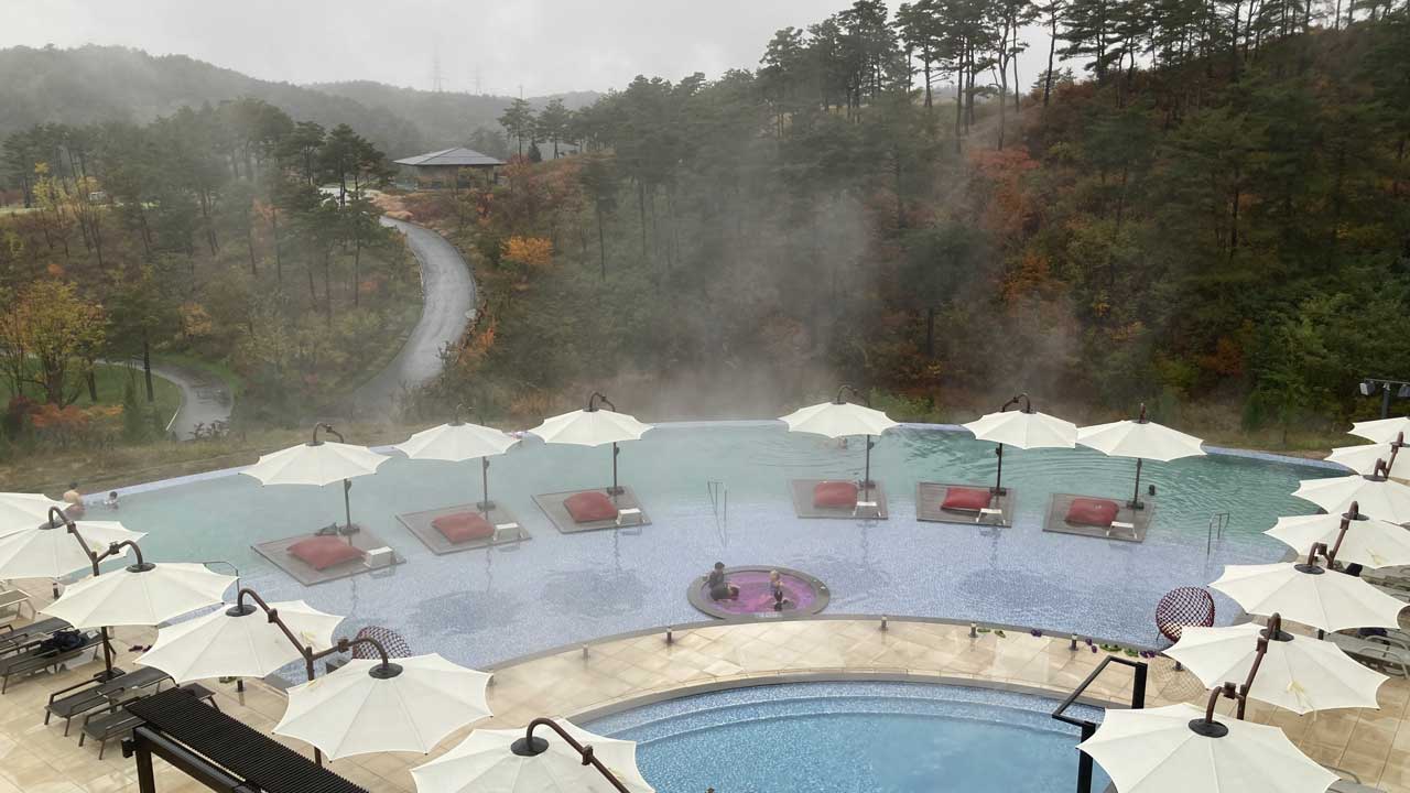 국내 리조트 야외 수영장 최초로 온천수를 직수로 공급한다고 한다.