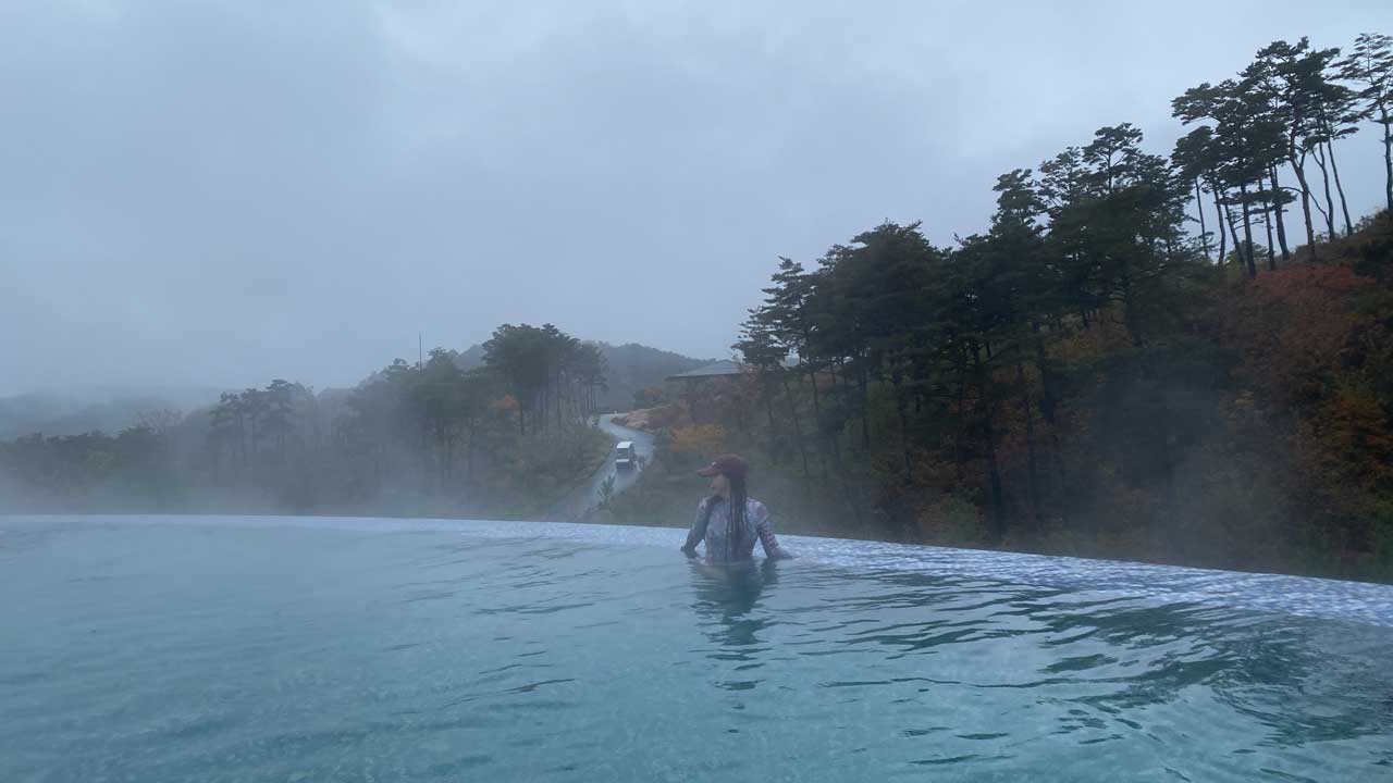 자연과 온천이 함께 전하는 따뜻한 온기가 우리를 맞이했다.