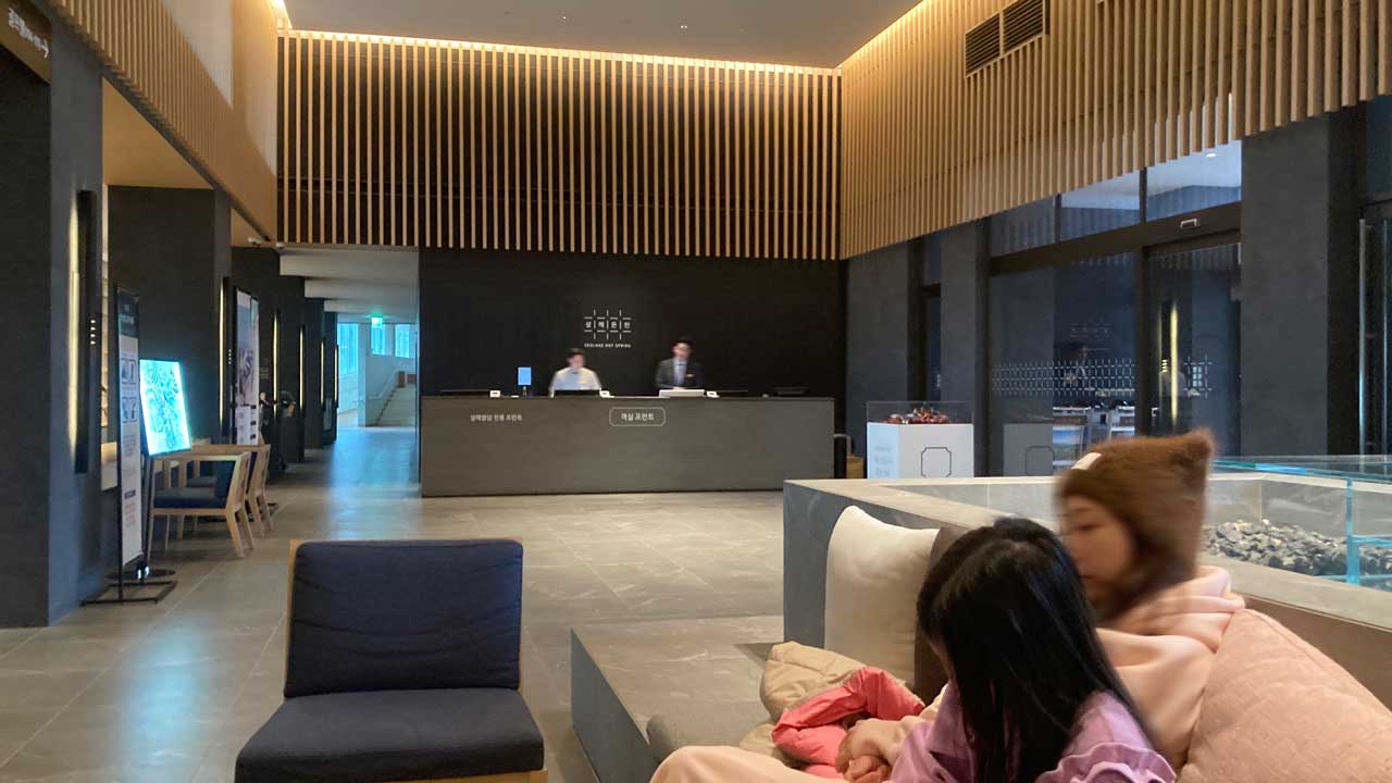 지하 1층에 있는 온천 프런트를 통해 사우나, 수영장, 스파를 이용할 수 있다.