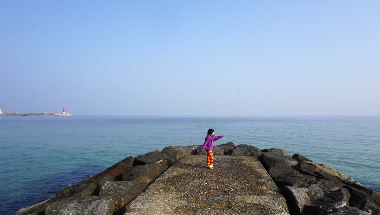 붉은 방파제 끝에서 만난 바람