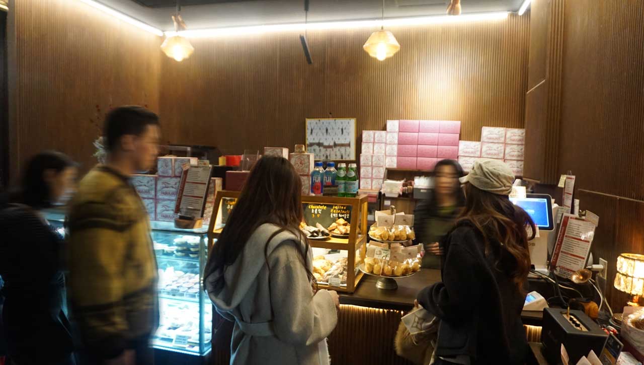 1층: 디저트 진열장 + 계산대라 늘 사람들 오가는 동선