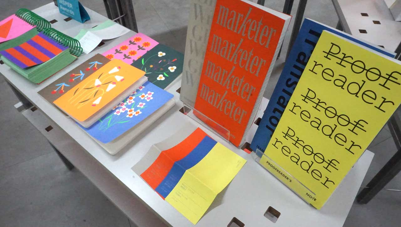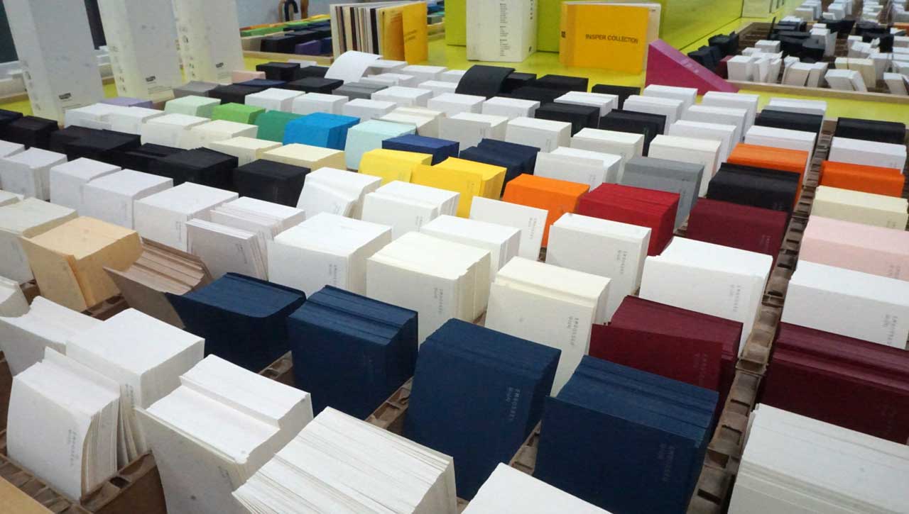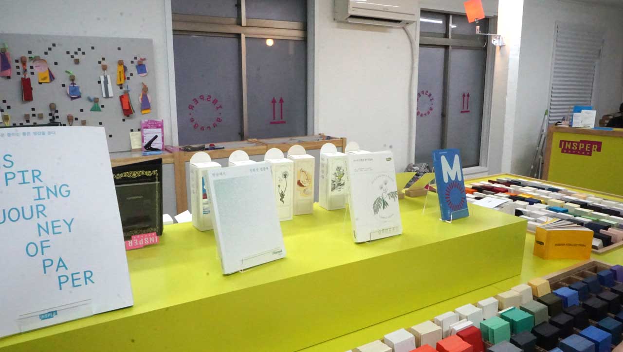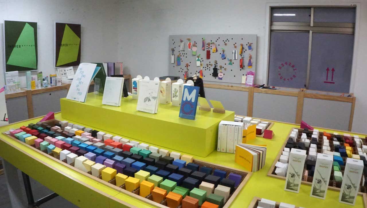 인스퍼의 샘플북들이 전시되어 있어 있었다.