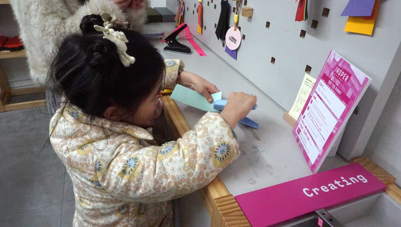 체험 공간에 들어서면 형형색색의 인스퍼(Insper) 종이 조각들이 준비되어 있다.