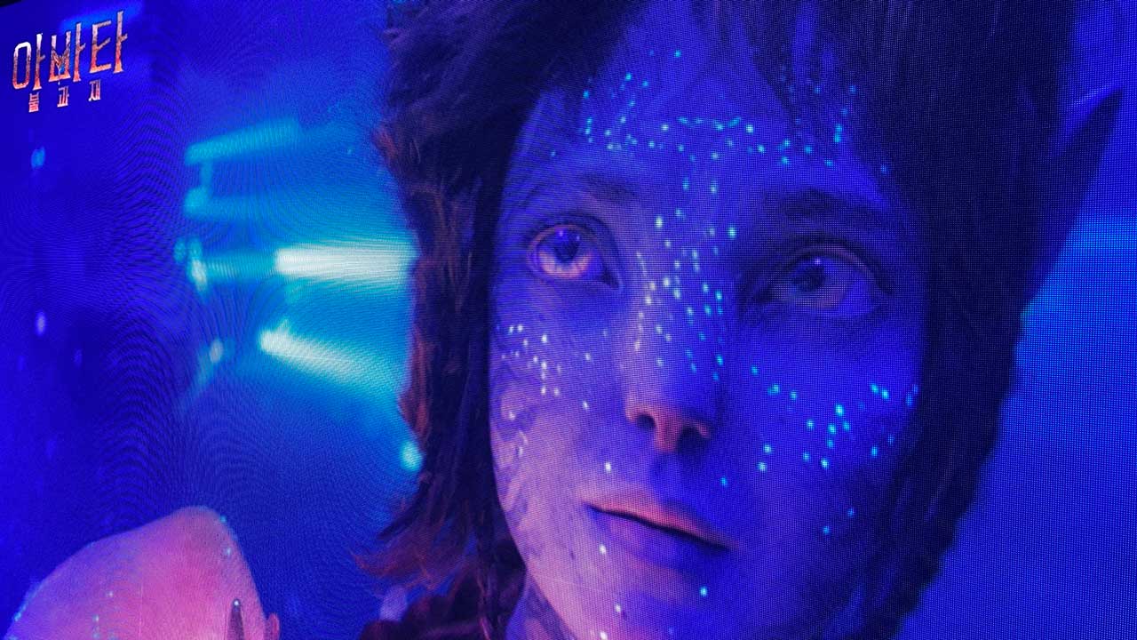 스텝의 안내와 함께 <아바타: 불과 재>의 예고편을 감상한다.
