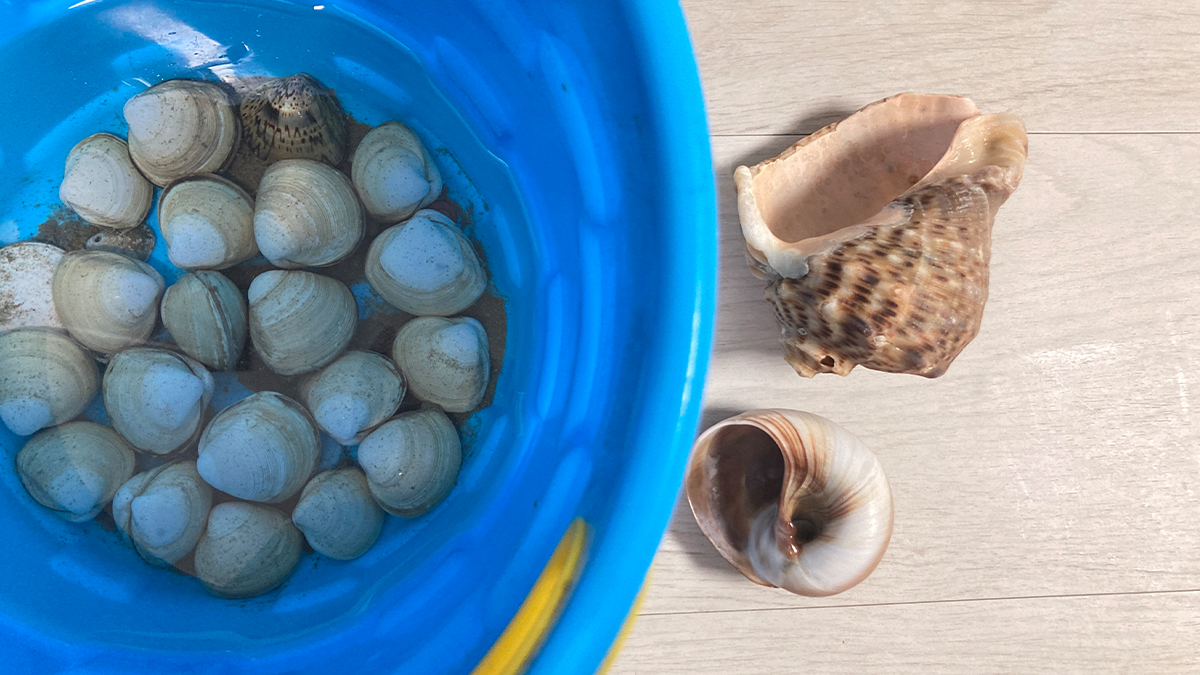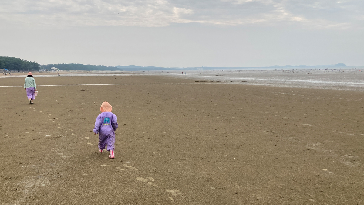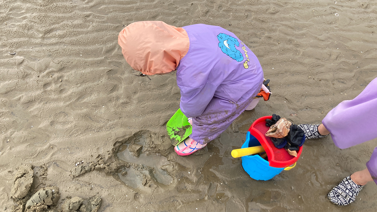 단 한 번의 조개 캐기를 위해 호미, 삽 같은 장비를 구입하기는 부담스러워서 모래놀이 장난감만 챙겼다.