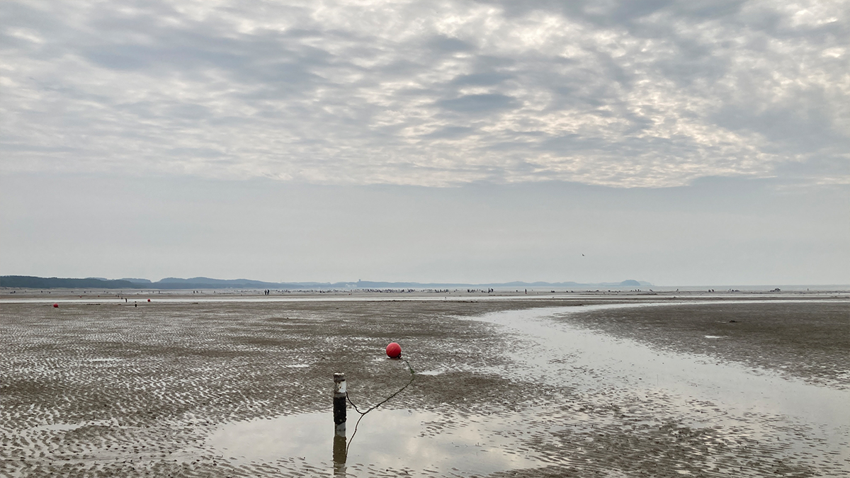 바다 물이 빠진 뻘은 물결무늬 그림들로 가득했다.