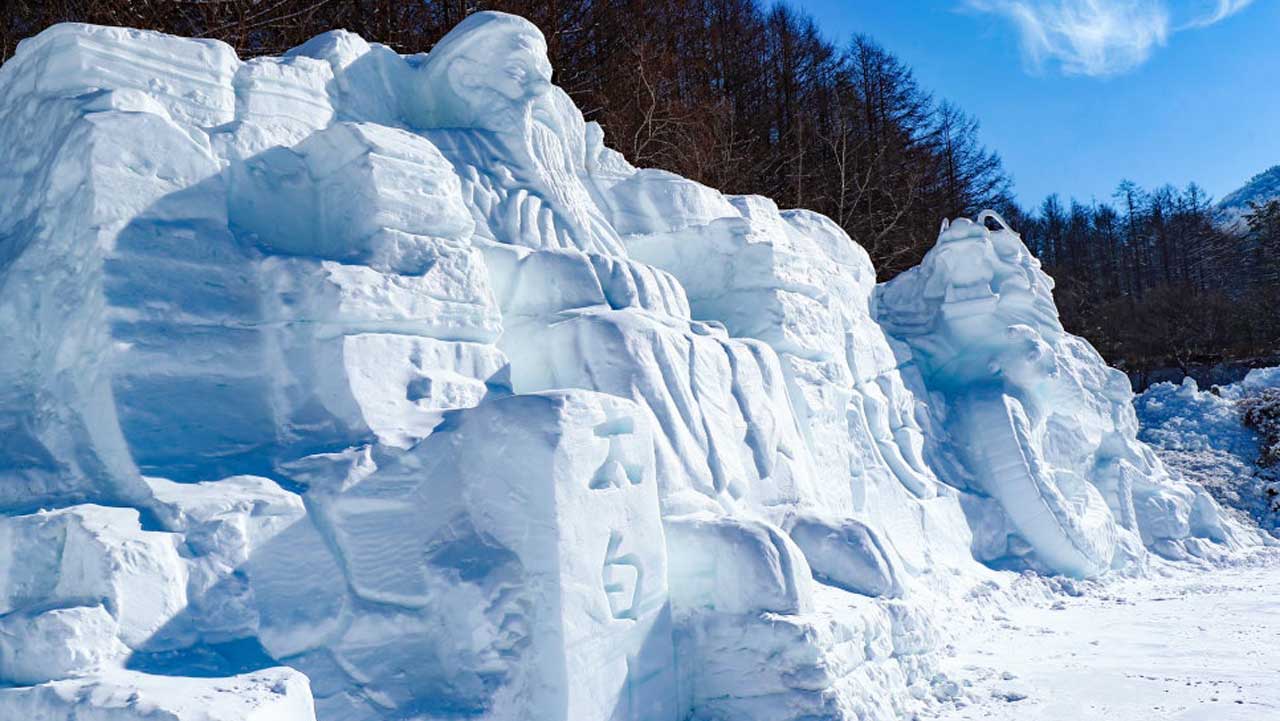 거대한 눈 조각 전시와 함께