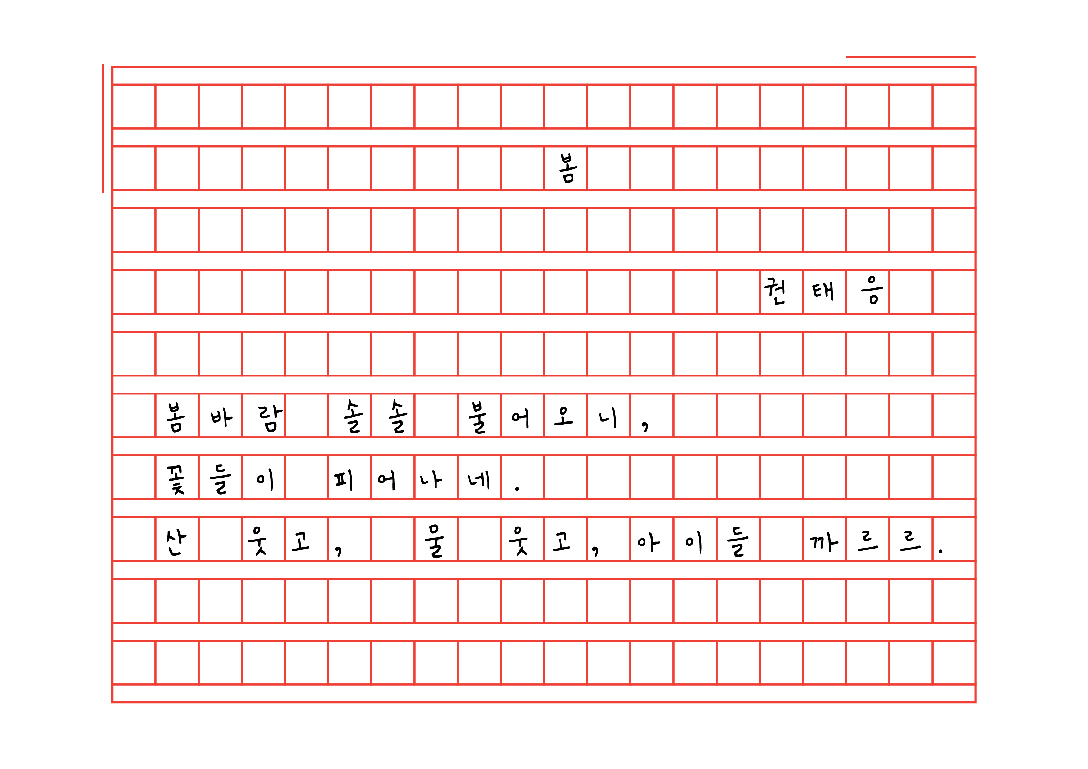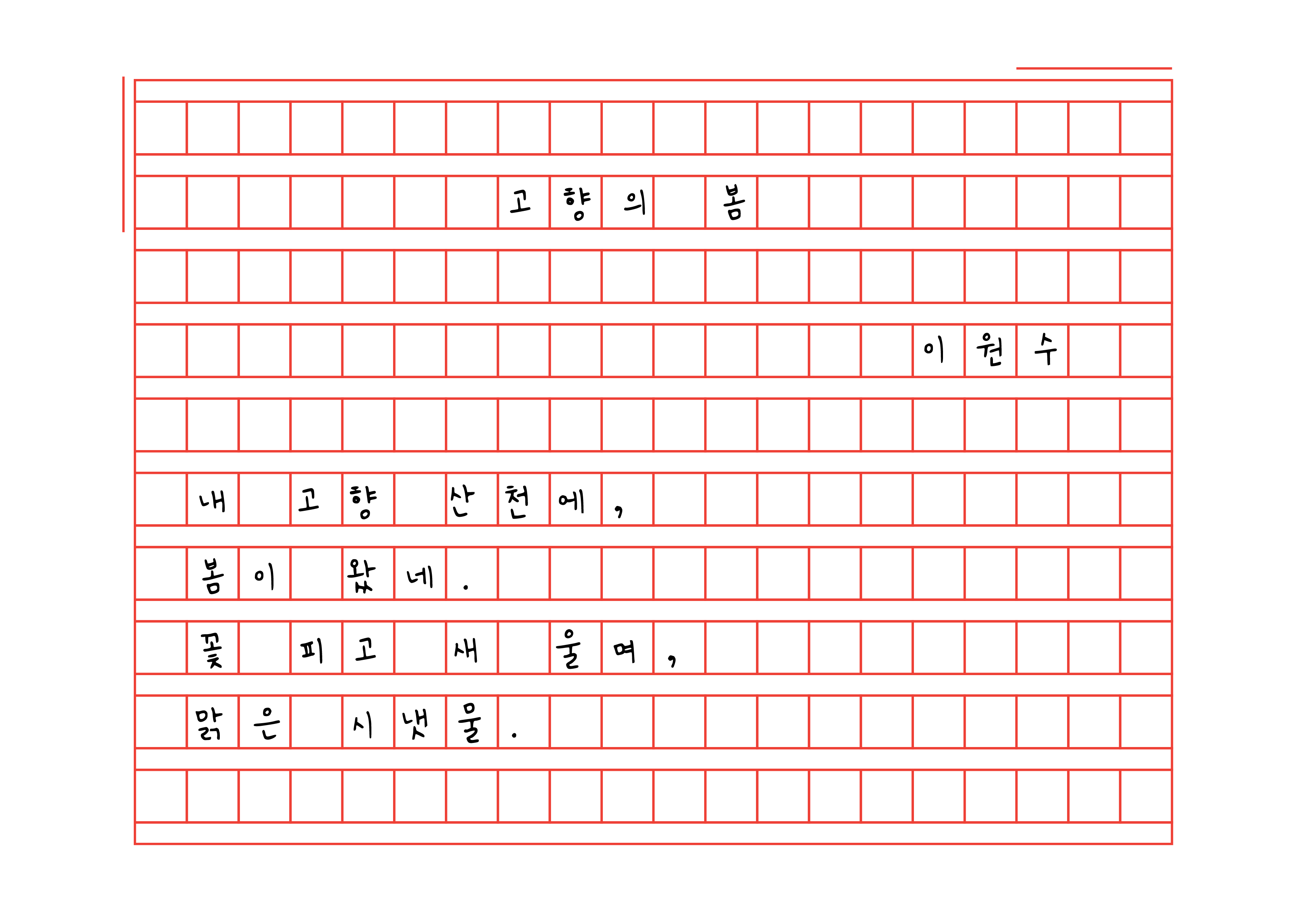 Perfect for practicing Korean handwriting, these poems are simple, fun, and easy to copy.
