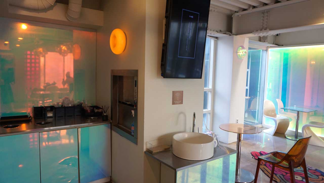 팝아트 그림과 함께 블링블링한 모던한 인테리어가 인상적이다.