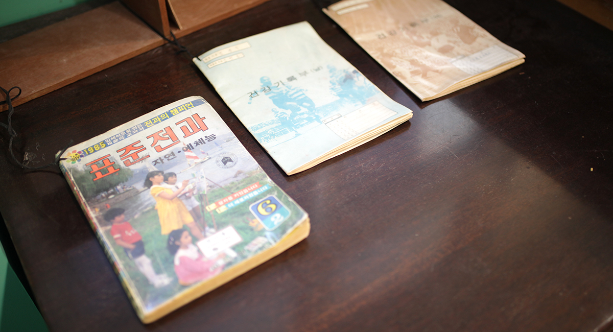 금각국민학교에서 사용하던 문패, 교과서, 책가방 등이 전시되어 옛 학교 교실을 재현하였다.