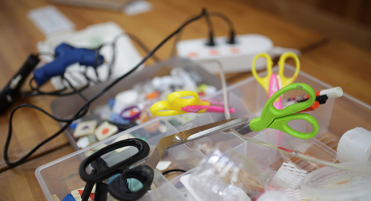 반대편에는 테이블에 재활용 물건들이 놓여 있었다.