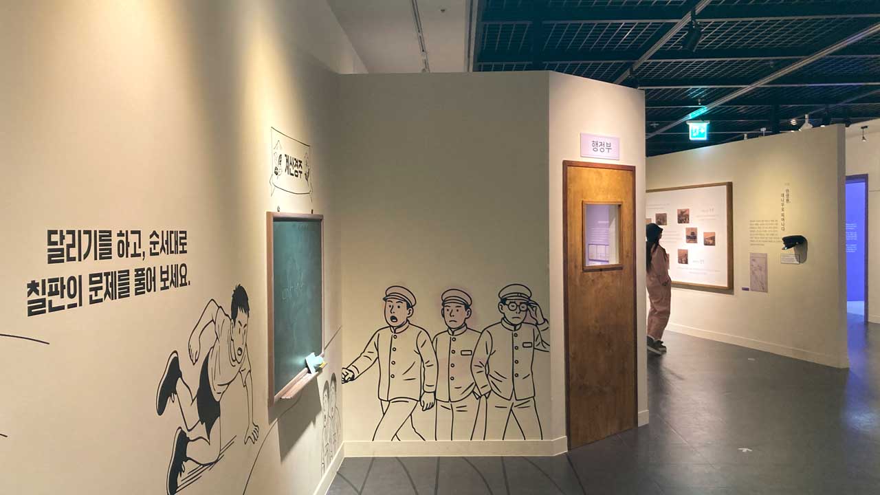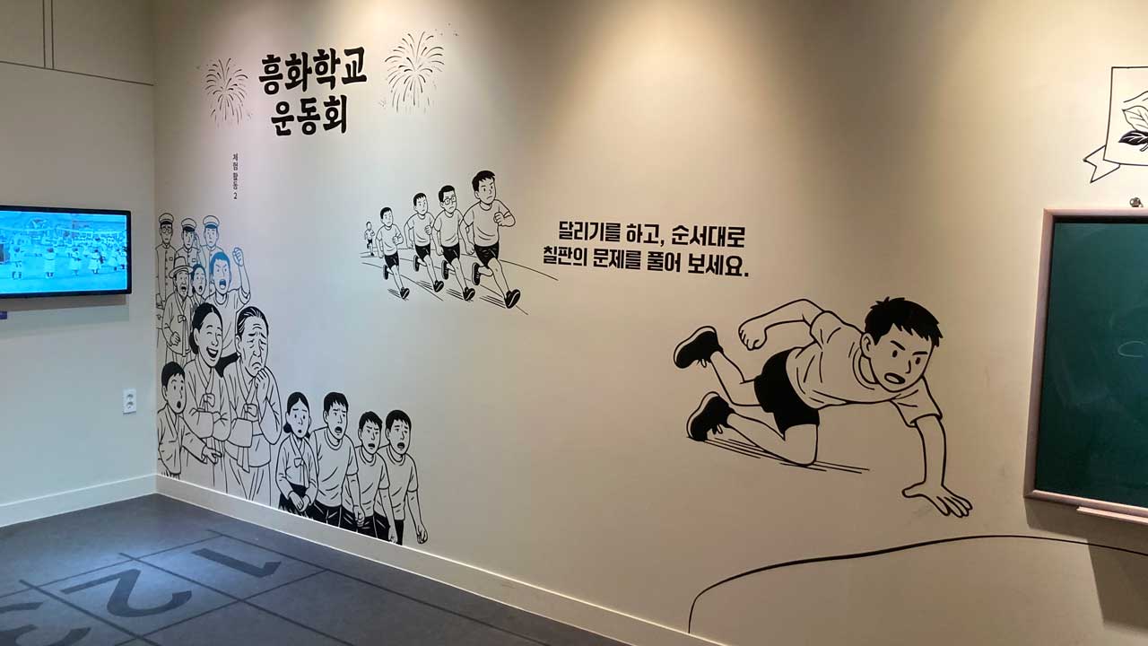 벽면에 그려진 아이들의 밝은 모습과 함께 직접 달리기를 하고