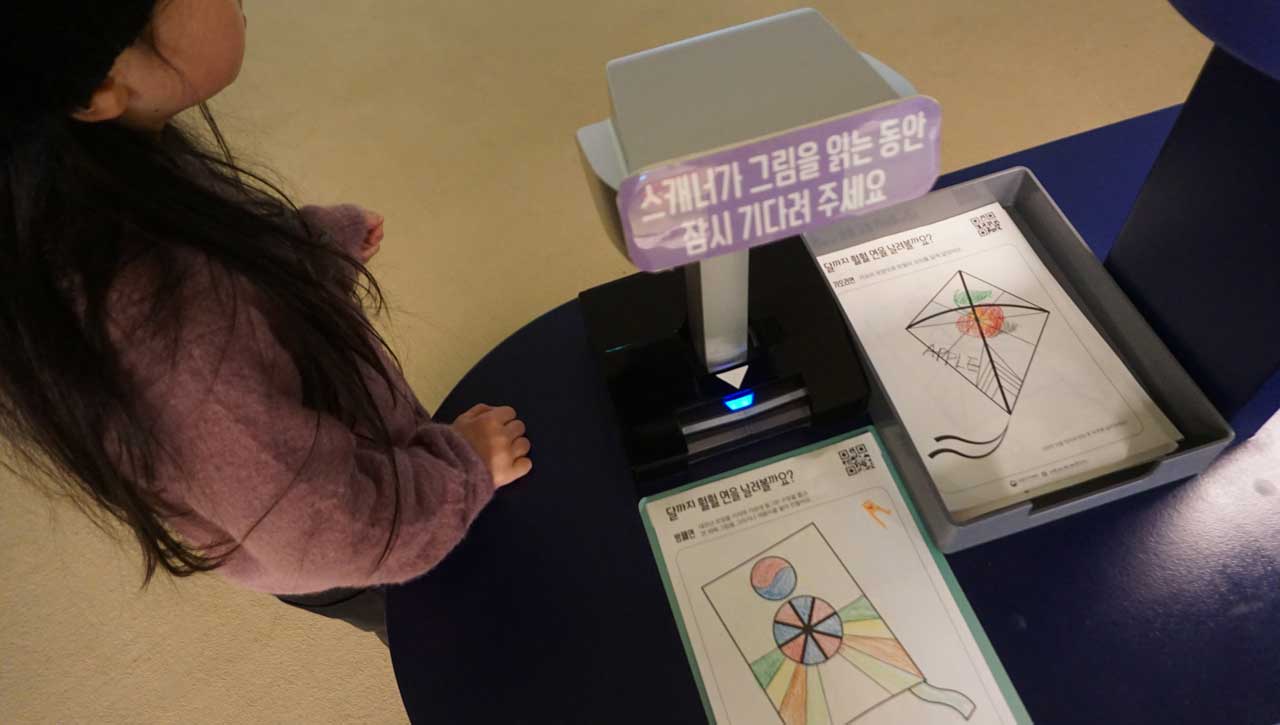 아이가 연이 그려진 종이에 직접 그린 그림이나 색칠한 결과물을 스캐너에 넣으면,