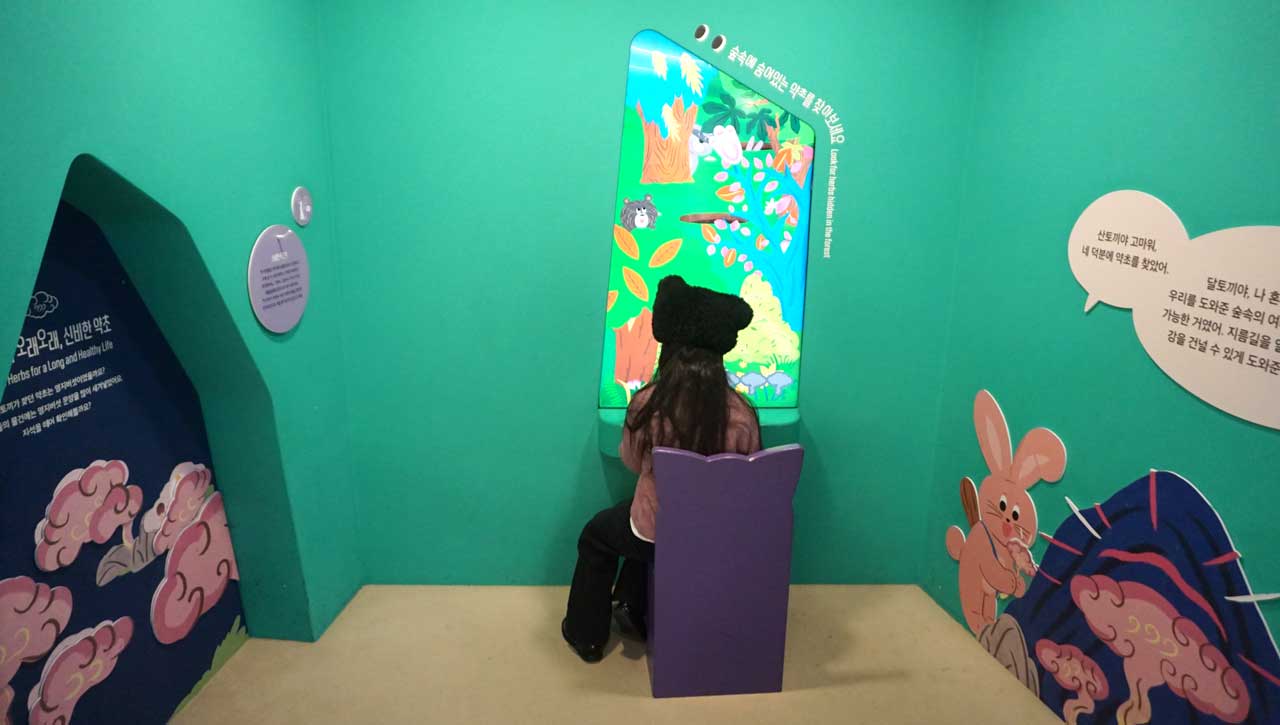 아이들이 직접 절구를 찧어보며 달토끼의 전설을 체험하는 디지털 인터렉티브 존이다.