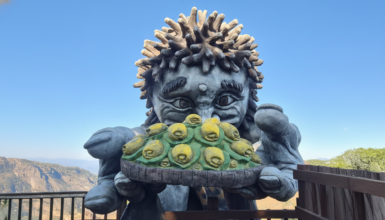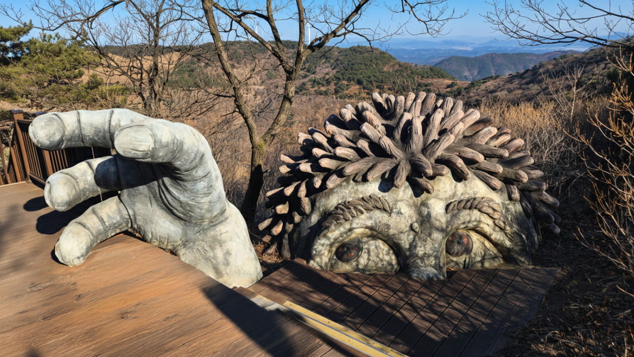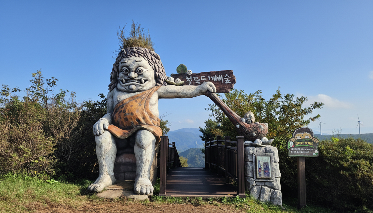 익살스러운 도깨비 조형물과 아름다운 자연경관이 어우러져