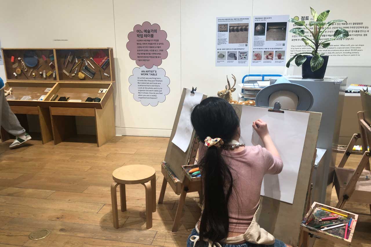 전시실 내 다양한 미술 재료들을 아이가 원하는 만큼 여유롭게 골라 사용할 수 있다.