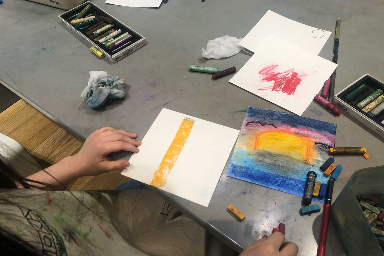 처음 파스텔을 접하는 아이도 금세 능숙하게 색을 섞고 문지르며 멋진 작품을 만들어 냈다.