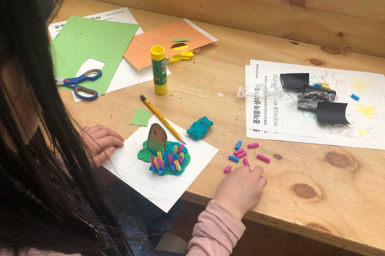 집에서는 감당하기 힘든 자잘한 미술 재료들이 이곳에선 최고의 예술 도구가 되었다.