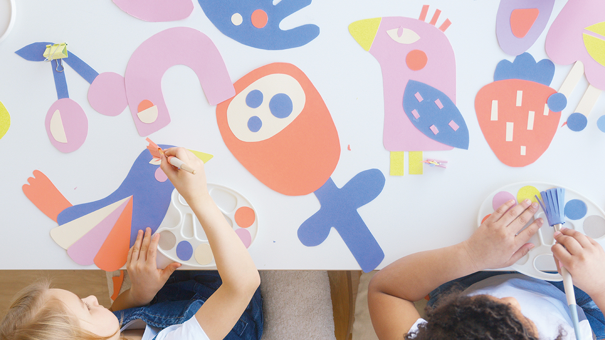 아이들이 다양한 색상과 질감을 탐색하게 하고, 만들고 싶은 것을 스스로 결정할 수 있게 하세요.