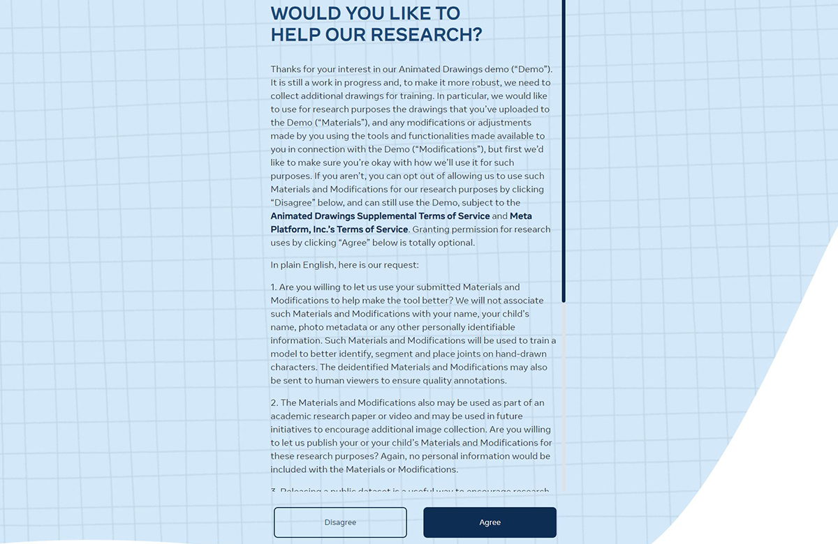 #2. 진행 시 "애니메이션 드로잉 데모 연구에 도움이 되도록 그림들을 수집하는 것에 동의 의향을 묻는데요,