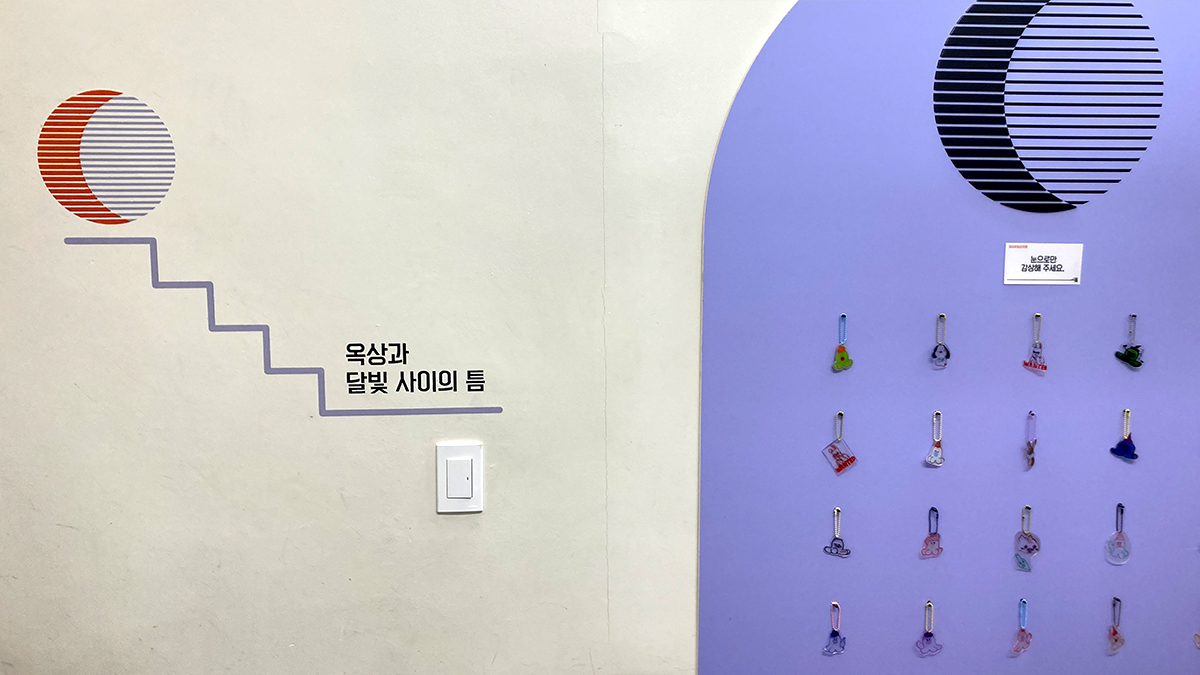 입구부터 위트 있는 벽면 그림으로 시작해서 지하 1층 공간으로 여행하듯 여정을 즐길 수 있다.