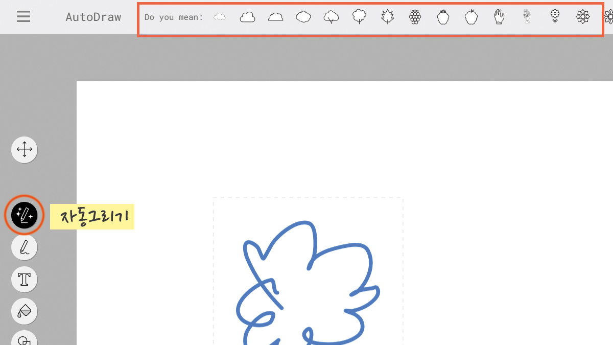 ■ 자동그리기 선택 후, 그림을 그리면 AI가 추천해 주는 그림을 선택할 수 있다.