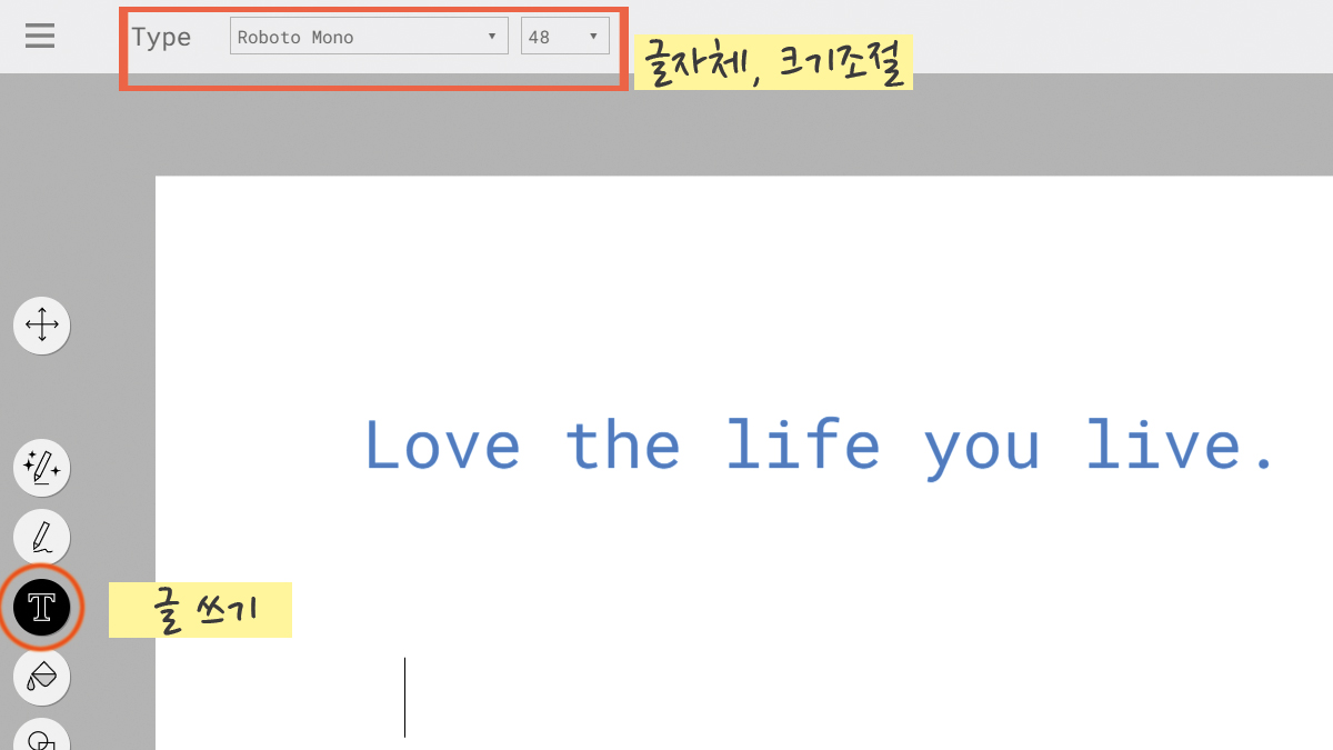 ■ 글 쓰기를 이용해서 한글, 영문 모두 사용할 수 있으며, 글꼴이나 크기를 자유롭게 조절할 수 있다.